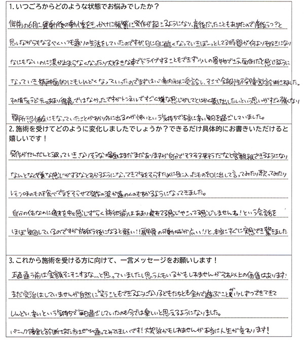 あなたのお身体の不調の根本的な原因へアプローチをする治療を組み立て、自律神経を整えパニック障害の症状の改善を行ってまいります。