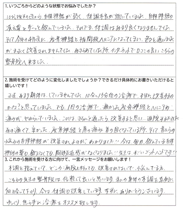 当院ではこのようにして、自律神経機能とお体の不快症状の両方の改善を同時に行っていきます。